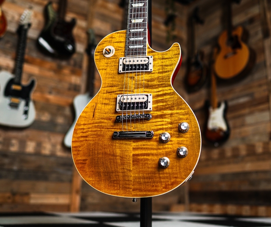 The Gibson Slash Les Paul Standard in Appetite Burst is the ultimate tribute to one of the most influential guitarists in rock history. Representing the “Appetite for Destruction” era tone that reignited the world’s love for the Les Paul, this guitar features a solid mahogany body with a AAA figured maple top and Slash’s personal spec touches.