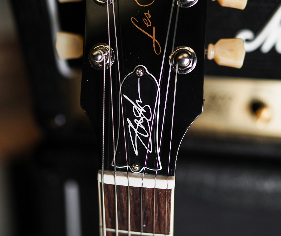 Signature Details: “Scully” drawing on back of headstock, Slash signature on truss rod cover