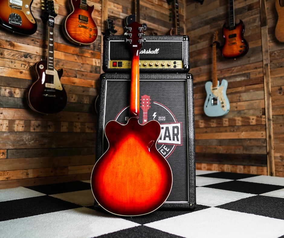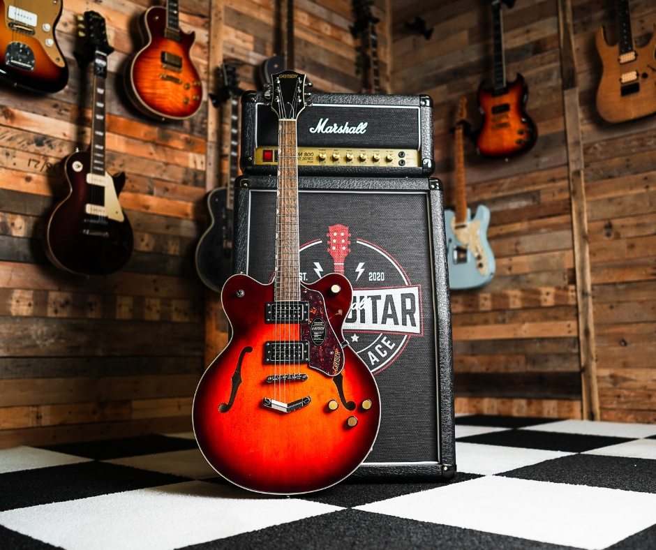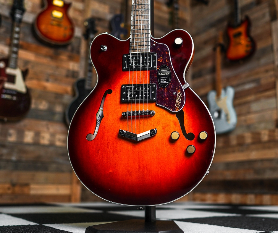 The Gretsch G2622 Streamliner Center Block in the striking Forge Glow finish is designed for three things: high-gain performance, easy playability, and spectacular style. Unlike traditional hollow-bodies that feedback the moment you step on a distortion pedal, the G2622 features a solid spruce center block running down the middle of the body. This reinforces the top and eliminates unwanted “howl,” allowing you to rock out at high volumes while keeping that rich, semi-hollow resonance.
