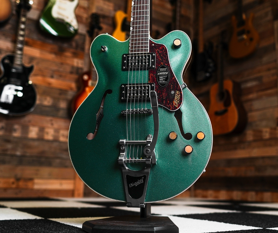 A perfect blend of vintage Gretsch flair and modern performance, the G2622T Streamliner Center Block Double-Cut (Steel Olive) delivers bold tone, light ergonomics, and versatile controls—all wrapped in a stylish package.