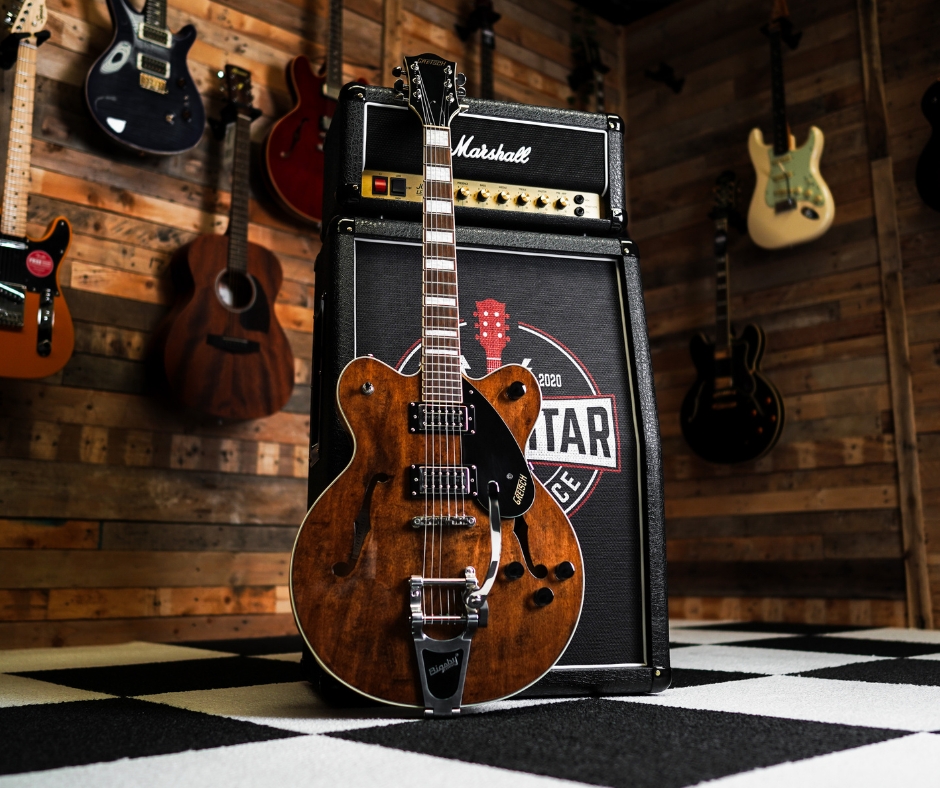 The Gretsch G2622T Streamliner in Imperial Stain blends vintage style with modern performance, offering rich, resonant tones and eye-catching aesthetics. Its Bigsby tremolo and Broad’Tron pickups make it perfect for everything from smooth jazz to gritty rock.