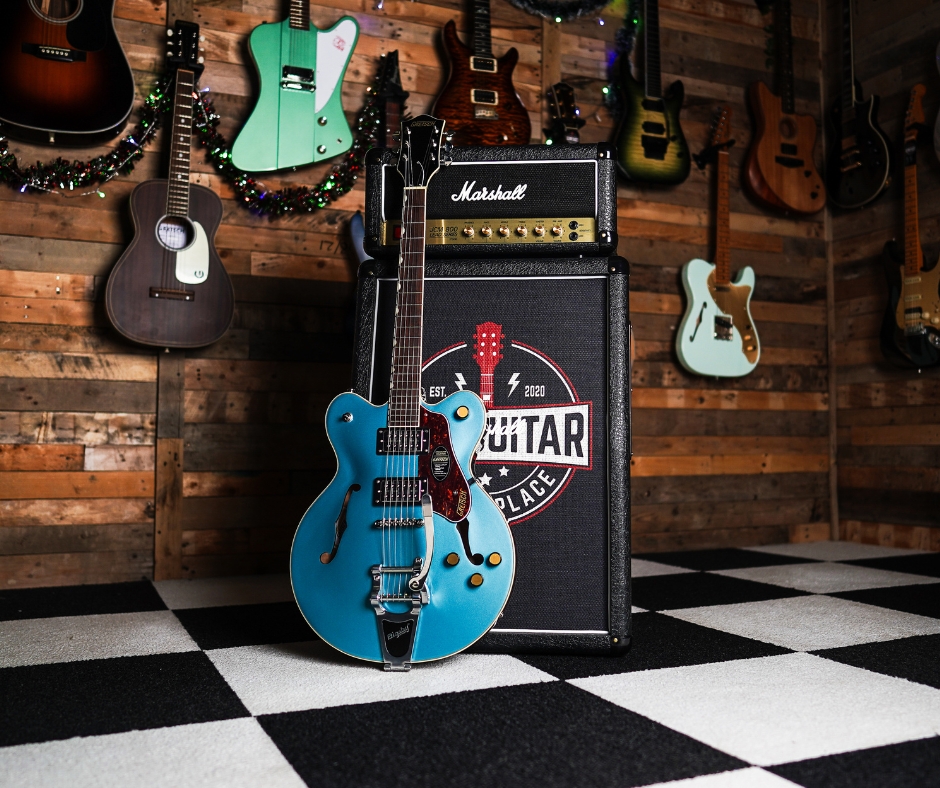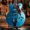 The Gretsch G2622T Streamliner with Bigsby in Arctic Blue delivers classic Gretsch style and tone with modern performance upgrades. Featuring a centre-block design for improved sustain and feedback resistance, it offers warm, punchy tones with clarity and versatility across genres.