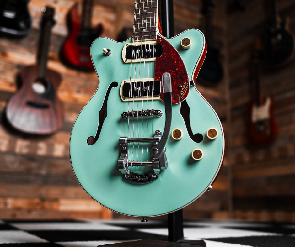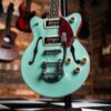 The Gretsch G2655T-P90 Streamliner in Two-Tone Mint Metallic offers bold vintage style with a unique sonic twist, thanks to its P90 pickup and compact center block design. Itβs a lightweight, punchy semi-hollow ideal for players who want clarity with a touch of grit.