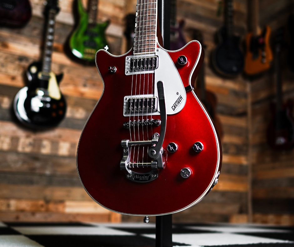 The Gretsch G5232T Electromatic Double Jet in Firestick Red delivers classic Gretsch tone and style in a compact, performance-ready format. With its chambered body, Filter’Tron pickups, and Bigsby vibrato, it offers punchy, articulate tones with a mix of warmth, clarity, and vintage character.