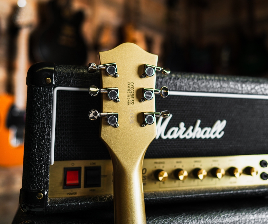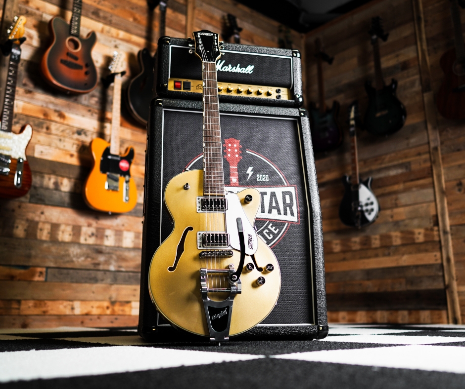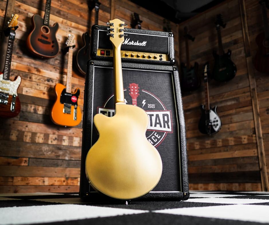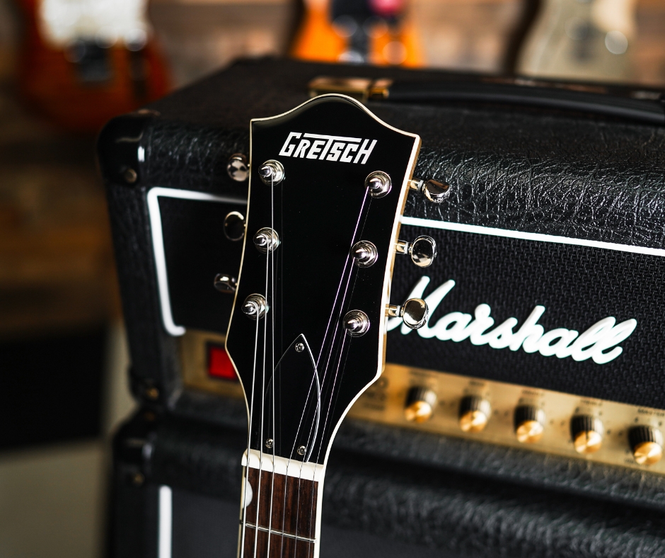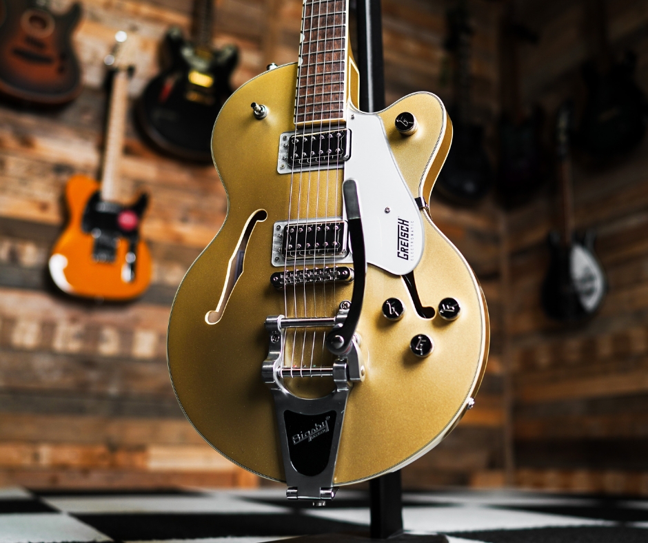 A stylish and lightweight semi-hollow, the Gretsch G5655T Electromatic Center Block Junior in Casinoβ―Gold delivers punchy tone with refined Gretsch playability. Its compact single-cut body, chambered spruce center block, and dual BroadβTron pickups produce strong articulation and vintage flair, while the Bigsby B70 adds expressive vibrato.
