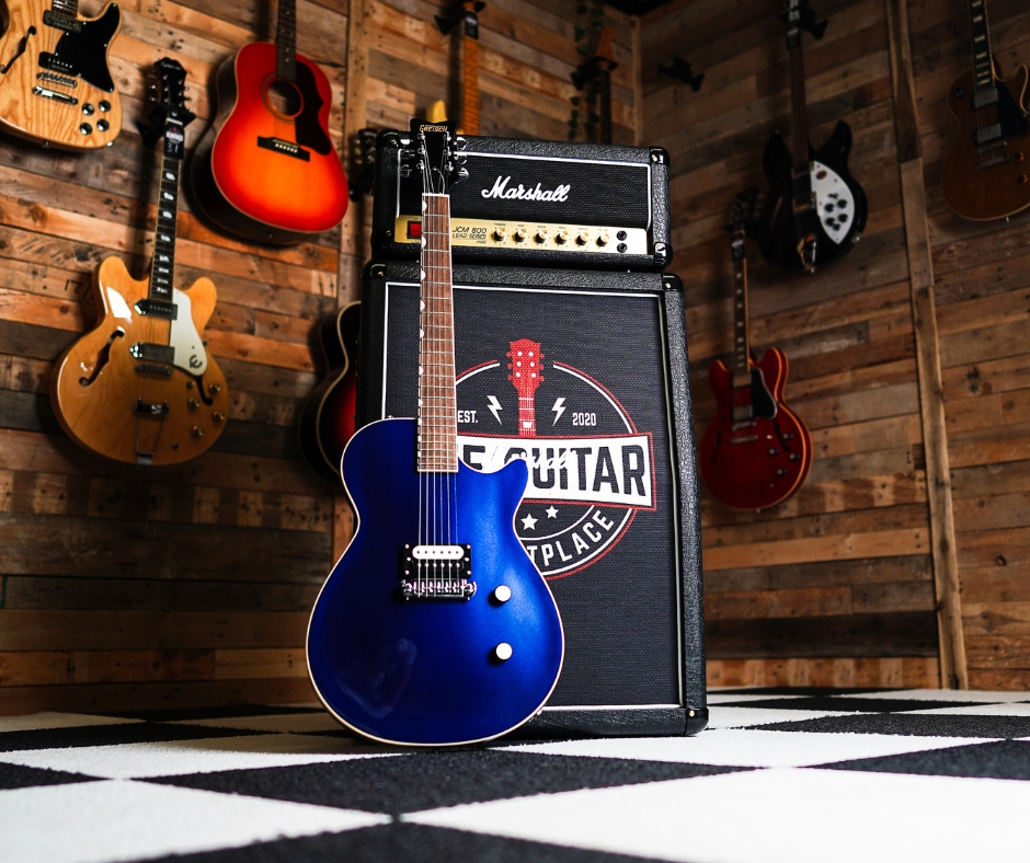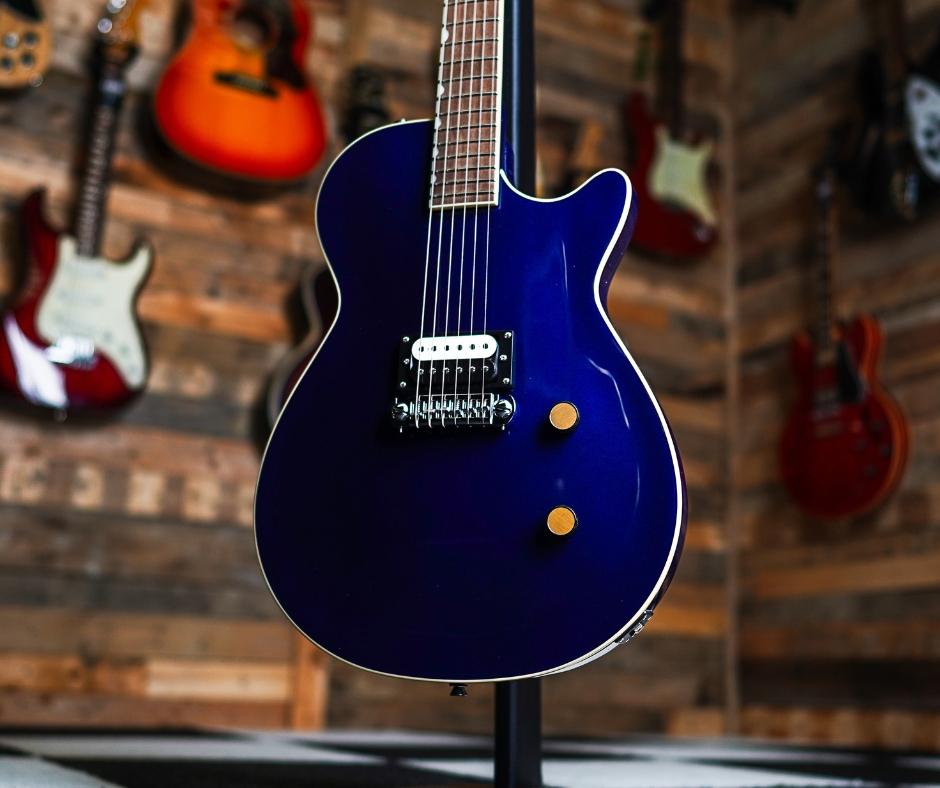 The Gretsch Streamliner Jet 1 Pickup in Midnight Blue is a solid‑body single‑cut electric built to deliver bold tone and high value. With a mahogany body and carved maple top, a fast “C” neck profile, and a high‑output HotWire™ ceramic humbucker, it brings punch and style in a sleek, modern finish.