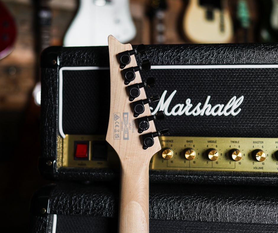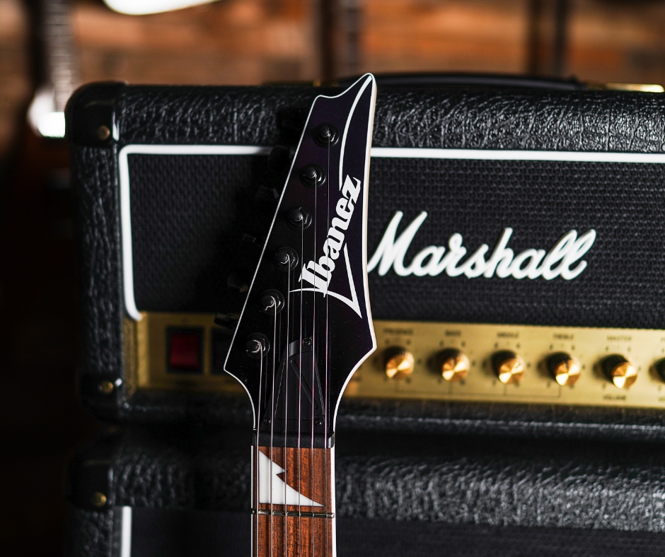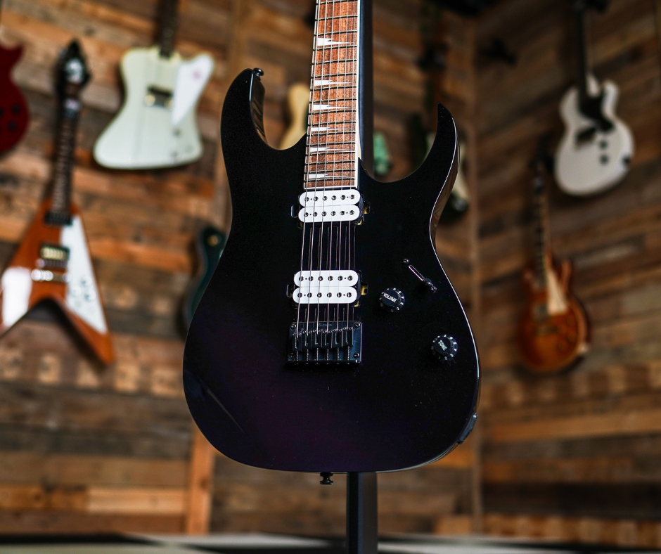 The Ibanez RG421DX in Twilight Shade is a high-performance machine designed for speed, precision, and aggressive tonal clarity. Part of the legendary RG series, it features a sleek mahogany body and the ultra-fast Wizard III maple neck, making it an absolute favorite for technical players and shredders alike.