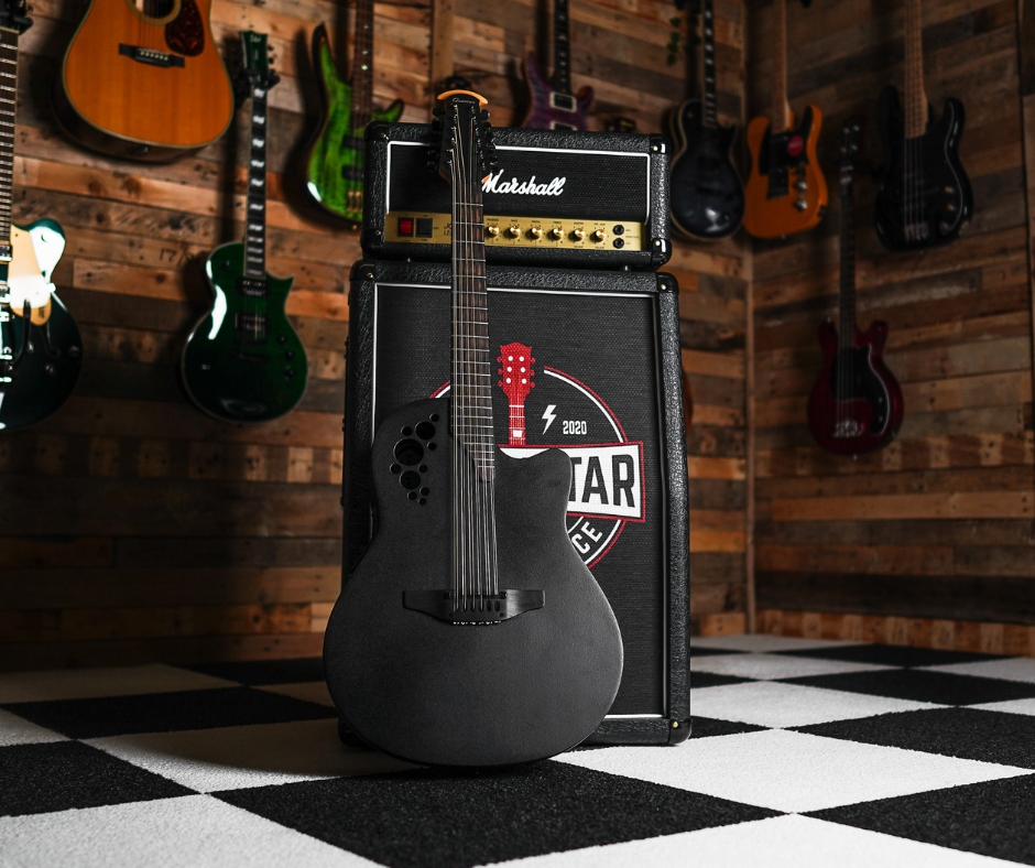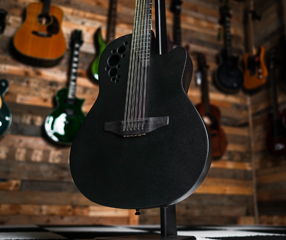 The Ovation Elite 2058 TX 12‑String (in Textured Black) blends classic 12-string shimmer with modern playability and built-in electronics. Its slim neck and Ovation’s signature roundback design help it feel comfortable to play, while the onboard pickup system makes it stage-ready.