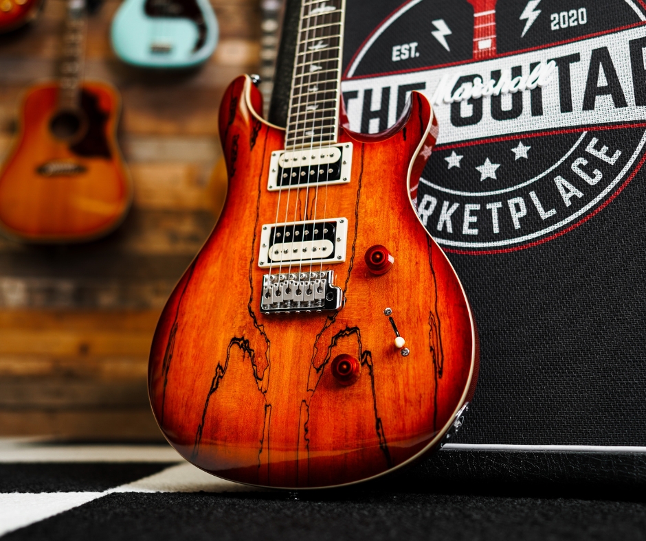 The PRS Limited Edition SE Custom 24 Exotic series offers a unique blend of PRS’s renowned craftsmanship with visually striking exotic wood veneers. These guitars maintain the core specifications of the SE Custom 24 line while featuring limited-run tops such as Spalted Maple and Zebrawood, providing both aesthetic appeal and versatile performance.