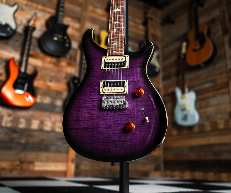 The PRS SE Custom 24 in Purpleburst is a part of the SE‑series by PRS — giving you the classic “Custom 24” design and feel at a more accessible price point. It combines a carved maple top and mahogany body with PRS’s signature ergonomic design, versatile pickups and smooth neck profile — great for players who want a “do‑everything” guitar suitable for rock, blues, indie or even heavier styles.