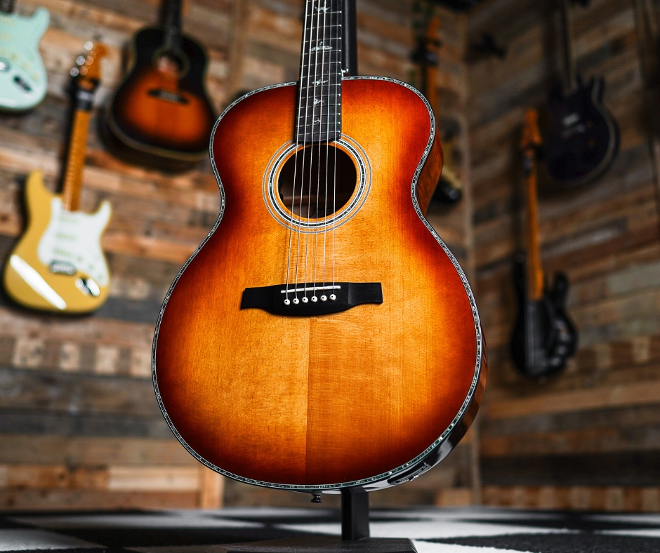 The PRS SE T50E Tonare Grand delivers a balanced, rich acoustic voice with the sophistication and build standards you’d expect from PRS, but at an accessible price point. Its Vintage Sunburst finish, sleek body shape and onboard pickup system make it ideal for both unplugged playing and stage performance.