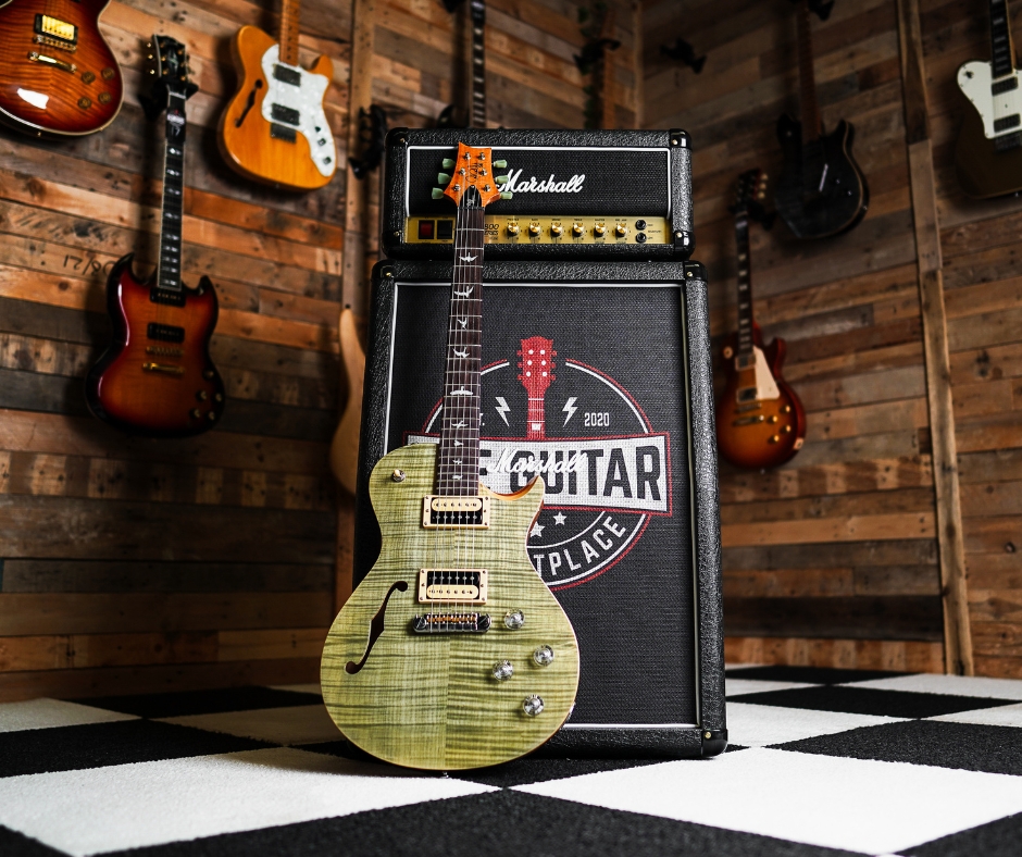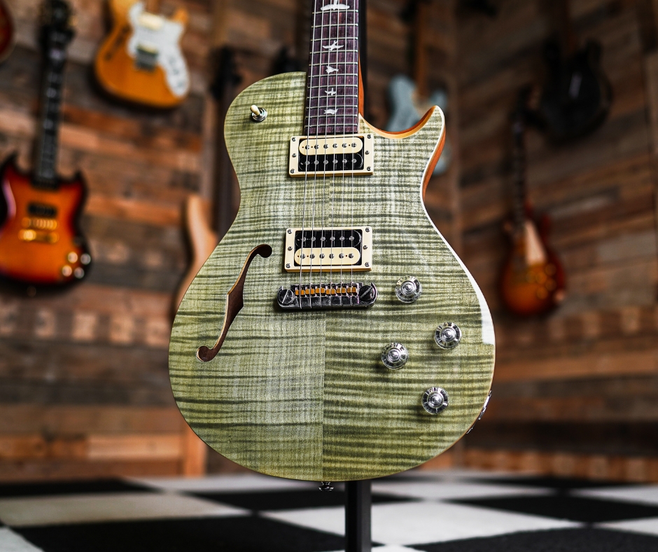 The PRS SE Zach Myers in Trampas Green is a signature semi-hollow model that blends vintage warmth with modern PRS playability. Designed with Zach Myers, it delivers rich resonance, smooth sustain, and a comfortable, broken-in feel thanks to its satin neck and semi-hollow construction.