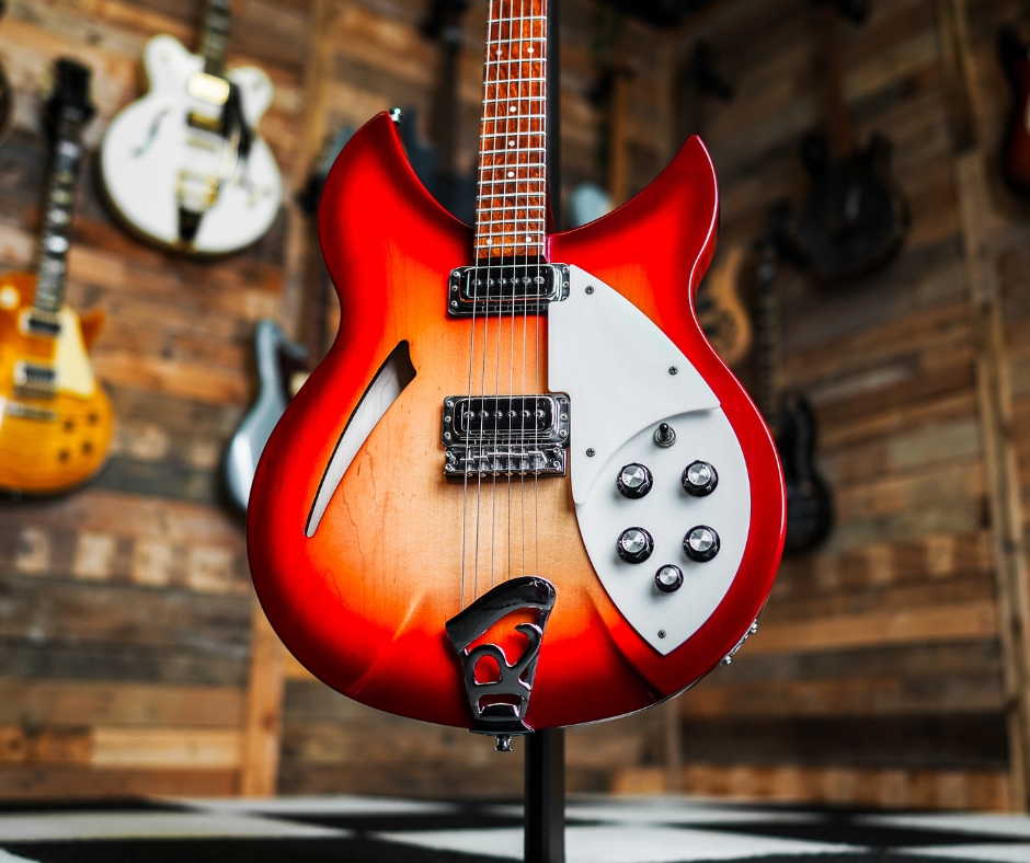 The Rickenbacker 330 is a classic semi-hollow electric guitar, cherished for its iconic jangle and resonance. Known for its distinct aesthetic and unique tone, the 330 is popular among rhythm and lead players alike, especially those inspired by classic rock, jangle pop, and indie music. The Fireglo finish gives it a timeless look, adding to its visual appeal and historic charm.