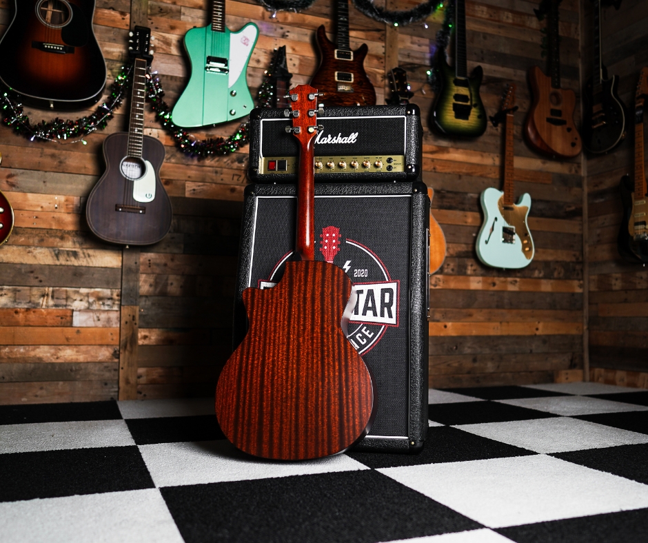 A classic Taylor Grand Auditorium with Venetian cutaway, the 314ce blends solid Sitka spruce top and solid sapele back & sides for a balanced voice with punchy mids and warm lows, while the sleek cutaway and V‑Class bracing give improved sustain, projection and responsiveness across playing styles. Equipped with Taylor’s high‑quality Expression System 2 onboard electronics, it’s equally suited to unplugged sessions and stage performances.