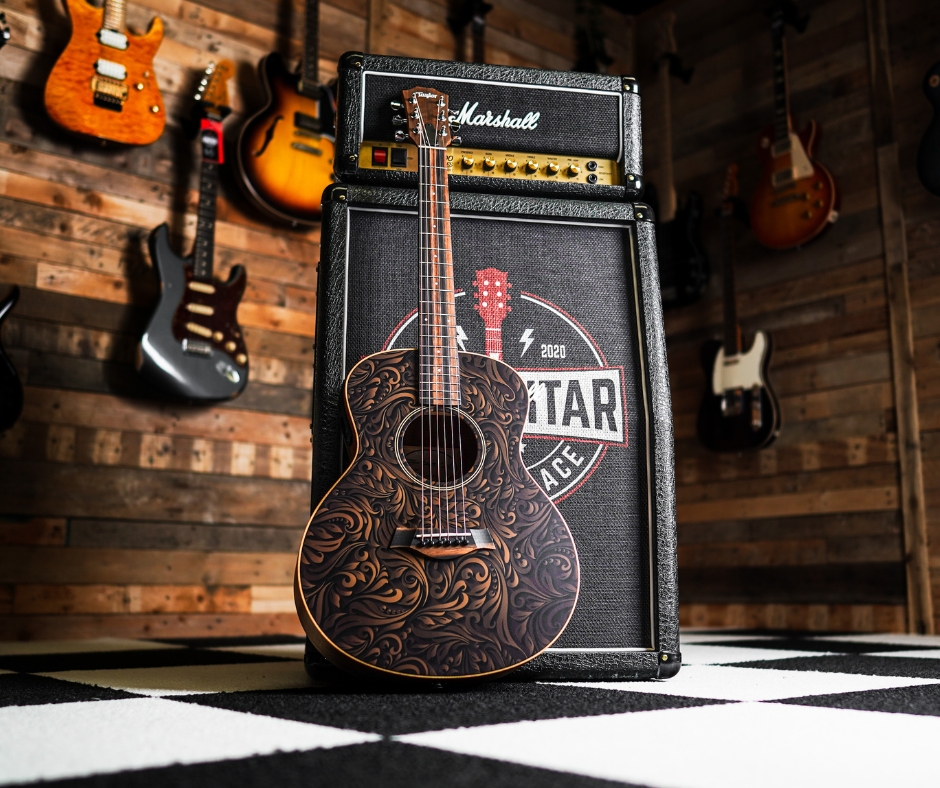 The Taylor GS Mini‑e Special Edition in Paisley Burst is a compact powerhouse—featuring a torrefied Sitka spruce top adorned with an ornate paisley graphic, layered sapele back and sides, and Taylor’s ES‑B pickup/preamp with built‑in tuner—delivering rich acoustic tone, striking aesthetics, and portability.