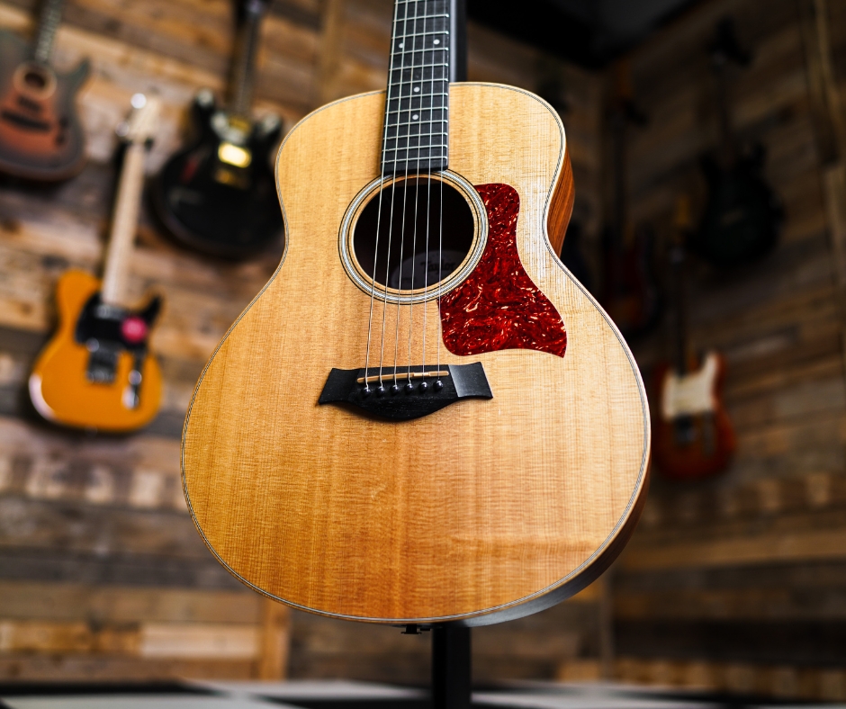 The Taylor GS Mini‑e Mahogany is a compact acoustic-electric powerhouse—featuring a solid Spruce top paired with layered sapele back and sides in Taylor’s Grand Symphony Mini body. Equipped with Taylor’s ES‑2 electronics, it offers rich, focused warmth and clarity that defy its size .