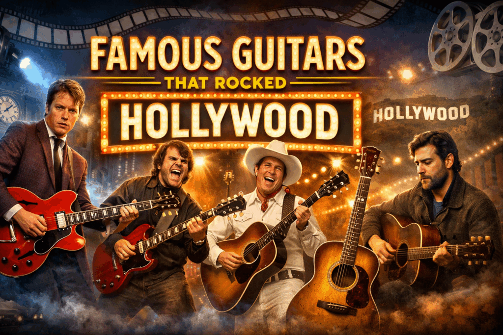 Guitars and cinema have always had a natural connection. Both capture emotion, personality, and cultural moments. Over the decades, certain instruments have become almost as memorable as the characters who played them on screen. From time-traveling rock riffs to school-of-rock shredding and country classics, Hollywood has showcased some truly unforgettable guitars.