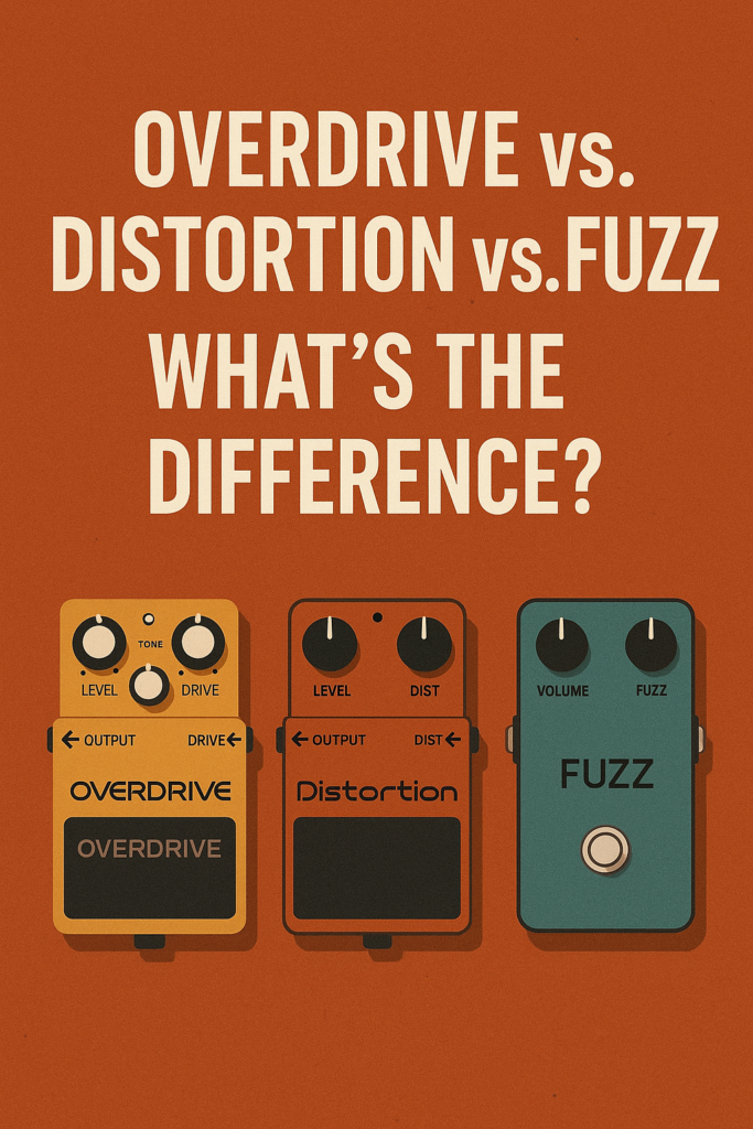 Guitarists chasing the perfect tone often find themselves swimming in a sea of drive pedals. But what exactly is the difference between overdrive, distortion, and fuzz? These terms are sometimes used interchangeably, but each has a unique sound and legacy. Let’s break them down—with a little help from some legendary pedals and players.