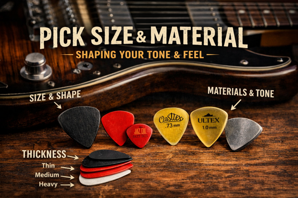 Let’s break down how pick size and material influence your playing.