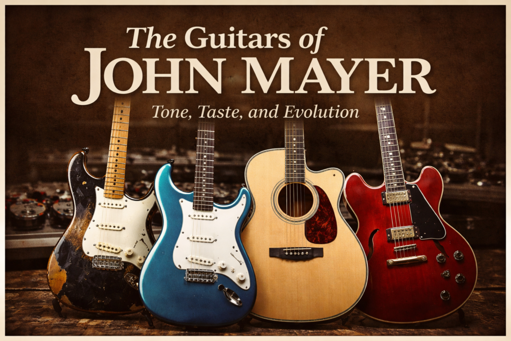 Few modern players have shaped contemporary guitar culture quite like John Mayer. Straddling the line between blues traditionalist and pop innovator, Mayer’s tone has always been central to his identity as a musician. Over the years, his guitar choices have reflected not just his influences—but his constant evolution as a player. From vintage-inspired Fender Strats to boutique builds and signature models, Mayer’s journey is as much about refinement as it is about expression.