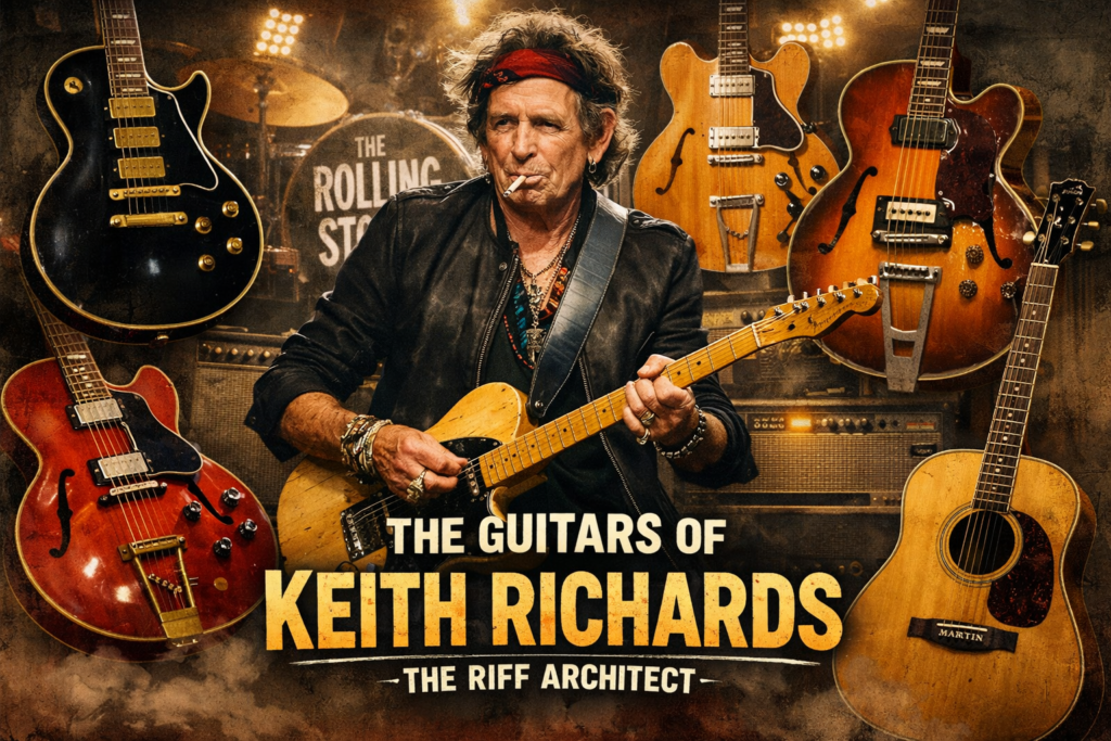 Few guitarists have defined the sound of rock ’n’ roll quite like Keith Richards. As the driving force behind The Rolling Stones’ unmistakable groove, Richards’ approach to guitar is less about virtuosity and more about feel, rhythm, and tone. Central to that identity is a collection of iconic instruments—each one tied to a specific era, tuning, or sonic evolution.