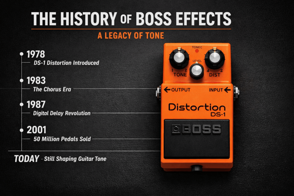 Few companies have shaped the sound of electric guitar as profoundly as Boss. From bedroom players to stadium-filling professionals, Boss pedals have become a universal language of tone—recognisable by their bold colours, tank-like enclosures, and near-bulletproof reliability.