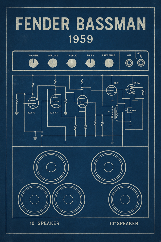 The Fender Bassman is a perfect example of design unintentionally ahead of its time. Born to support bass guitar, it ended up shaping the sound of guitar-based music for decades — from American blues to British rock and beyond. Whether you’re a vintage purist chasing tweed tones, or a modern pedalboard aficionado seeking a clean canvas, the Bassman stands as one of the most enduring amp circuits in history.