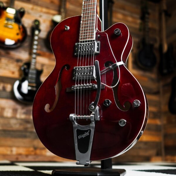 The body type of a guitar plays a crucial role in the sound it produces. Guitars come in three main body types: solid-body, hollowbody, and semi-hollowbody. A solid-body guitar is made from a single piece of wood and is commonly used in rock music. A hollowbody guitar has a hollow chamber that produces a warm, acoustic sound and is commonly used in jazz and blues music. A semi-hollow body guitar is a combination of both solid and hollow-body guitars and offers a more versatile sound.